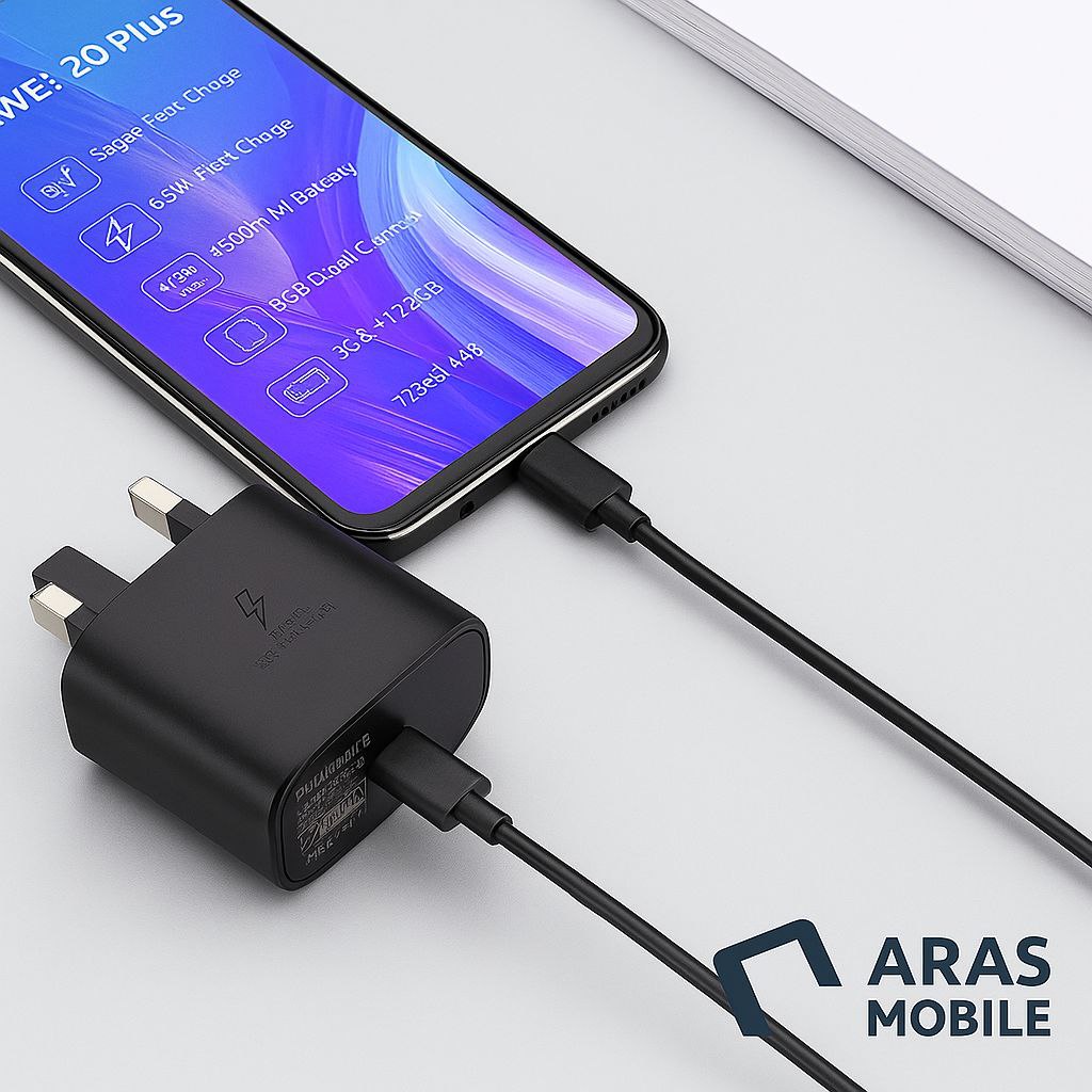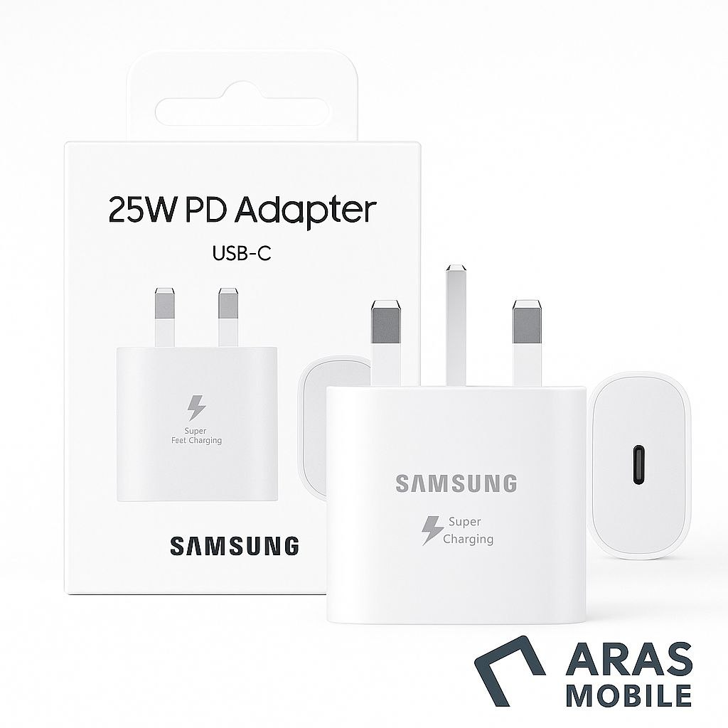 شارژر ۲۵ وات سامسونگ با فناوری Super Fast Charging، مناسب برای شارژ سریع و ایمن انواع گوشیهای سازگار با USB-C است.