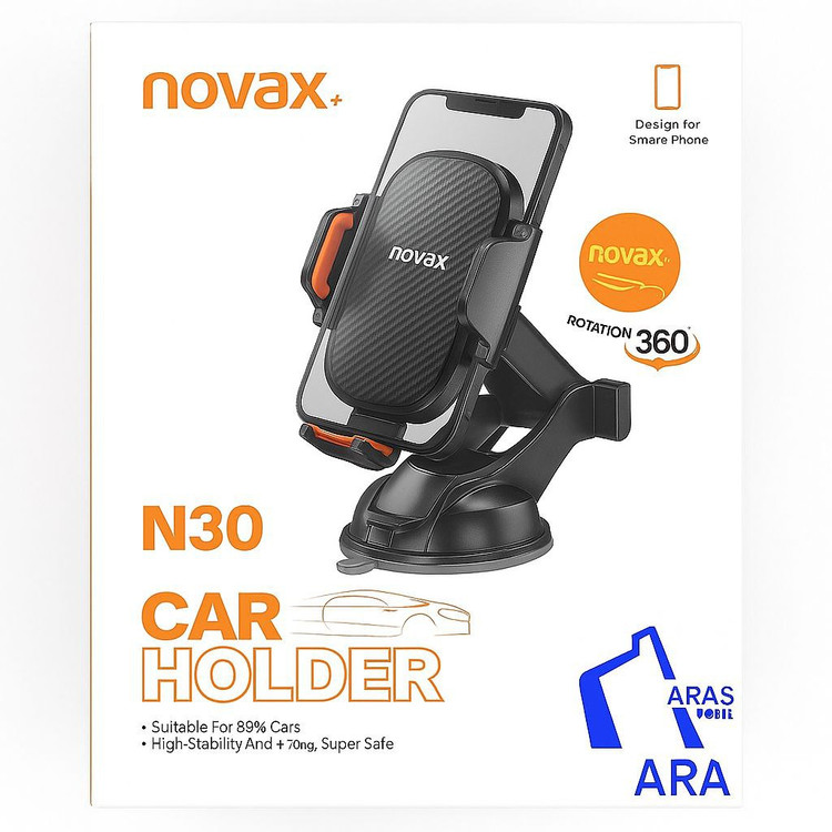 نگه دارنده موبایل خودرو نوواکس مدل N30 با پایه مکنده قوی و چرخش ۳۶۰ درجه