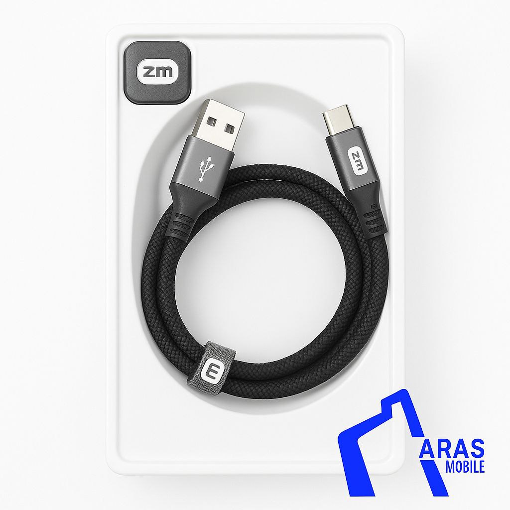 کابل شارژ سریع ZM تایپ C با خروجی 3 آمپر، طراحی مقاوم با روکش کنفی، مناسب برای انواع گوشیهای اندرویدی، تبلتها و دستگاههای Type-C. پشتیبانی از شارژ سریع و انتقال داده با دوام بالا.
